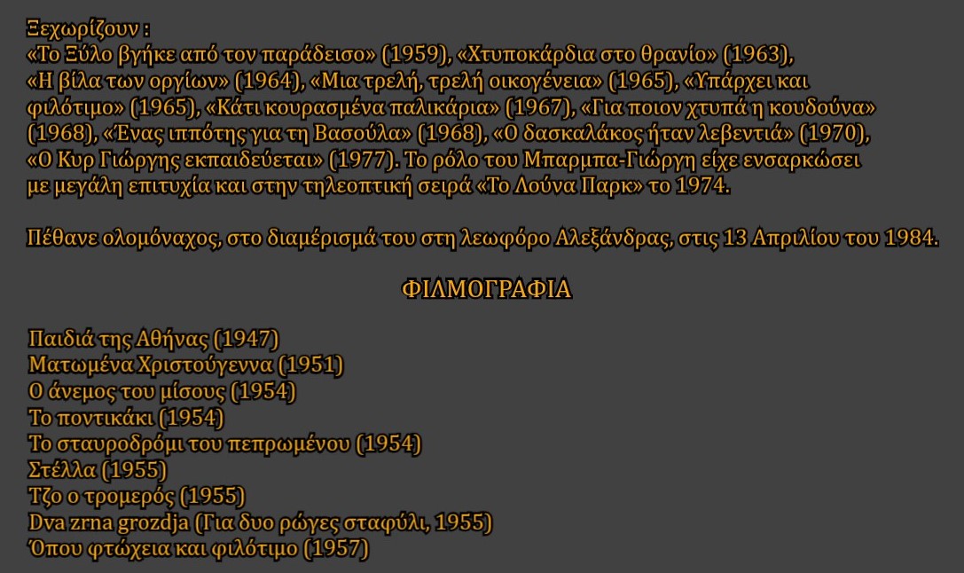 Και θυμάμαι ότι έκλεισα τον επικήδειο λέγοντας : «Αν ήξερες πόση χαρά μάς έδινες στο γήπεδο, αλλά και πόσο ακριβά πληρώνουμε από τα μικράτα μας την αγάπη μας στον Εθνικό, τον οποίο εσύ μας έκανες να αγαπήσουμε...»