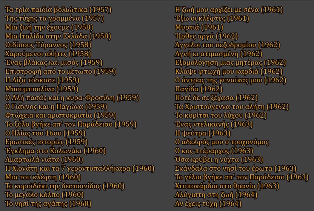Ο Λάσκος την έπεισε να παίξει στην ταινία του Ραγισμένες καρδιές (1945). Αρχικά, η Γκρέκα επρόκειτο να πρωταγωνιστήσει στα Χειροκροτήματα του Γ. Τζαβέλλα, πλάι στον Αττίκ και τον Δημήτρη Χορν, αλλά ο σύζυγός της την απέτρεψε, ώστε να συμμετάσχει στο δικό του φιλμ. Κατόπιν, έπαιξε στην ταινία Πρόσωπα λησμονημένα (1946) του Τζαβέλλα, στο πλευρό των Αιμίλιου Βεάκη, Γιώργου Παππά και Λάμπρου Κωνσταντάρα. Ο σκηνοθέτης, που εμφανιζόταν σε μια σκηνή του έργου ως οδηγός αυτοκινήτου, αποκήρυξε το δημιούργημα του ως τη μεγαλύτερη του αποτυχία. Συνέχισε την κινηματογραφική της καριέρα με μια μόνο ακόμη ταινία, την Μαρίνα, όπου ανέλαβε πάλι τον πρωταγωνιστικό ρόλο. Η ταινία, σε σενάριο των Αλ. Σακελλάριου - Χρ. Γιαννακόπουλου και σκηνοθεσία του πρώτου, ήταν μια παραγωγή του κουμπάρου της Φιλοποίμην Φίνου και προβλήθηκε το Μάρτιο του 1947. Η Γκρέκα είχε στο πλάι της τον Δημήτρη Μυράτ και τον Λ. Κωνσταντάρα. Ήταν ένα απλό ρομάντσο, που έγινε μεγάλη επιτυχία, λόγω της σκηνοθεσίας του Σακελλάριου και των τραγουδιών που ερμήνευε η Γκρέκα.